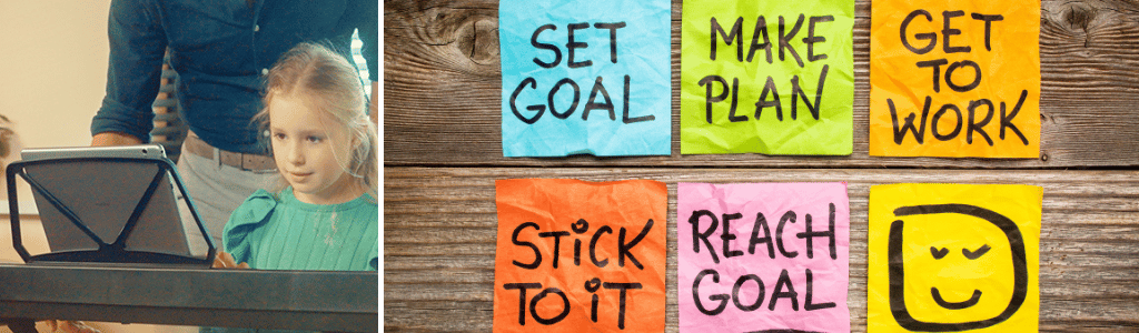 Learning an instrument can feel like standing at the bottom of a mountain - exciting, but overwhelming. That’s where micro-goals come in. By breaking your journey into smaller, clear steps, you give yourself steady wins to aim for. Not only does this help you stay motivated, it also makes your progress more visible - which is exactly what you need when you’re starting out.