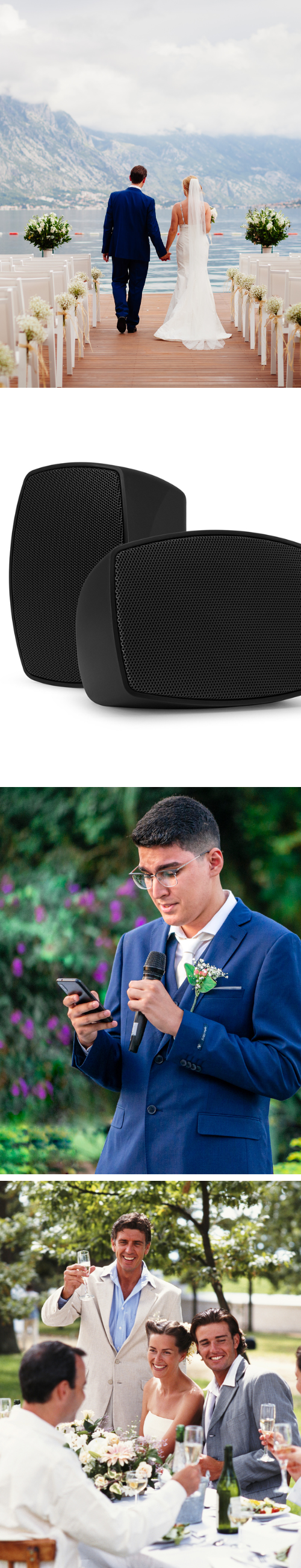 The BHW30BK speakers provide exceptional sound quality, ensuring that every word spoken and every note played is heard clearly by all guests. Their compact yet powerful design allows for strategic placement around the ceremony area, ensuring even sound coverage without overwhelming the visual aesthetics of the venue. These wall-mounted speakers can be discreetly integrated into various outdoor setups, whether it's a garden, beachfront, or courtyard wedding, blending seamlessly with the surroundings while delivering outstanding audio performance.