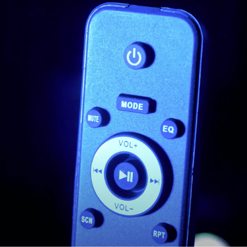 Control the media player built into the active speaker by using the included infrared remote control. Skips songs, adjust the volume, mute, play, pause and repeat tracks at your leisure!